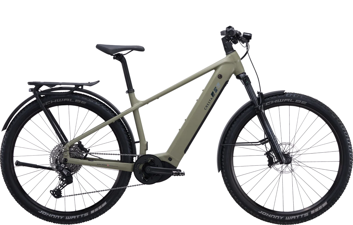 Le Cresta eRoadster ST sportif dispose de la géométrie de cadre et de la maniabilité d'un VTT. Grâce à son centre de gravité bas, il colle à la route et prend ses virages comme accroché à un rail. Le triangle arrière court lui donne de l'agilité - parfait pour les trajets à la fois rapides et décontractés en ville et en tout-terrain. Avec ses garde-boue, son porte-bagages, sa béquille et son système d'éclairage, l'eRoadster GT est fait pour un usage quotidien, par tous temps. Les pneus larges et la fourche suspendue assurent un grand confort. La posture légèrement inclinée est adaptée à la vie quotidienne ainsi qu'à la randonnée.